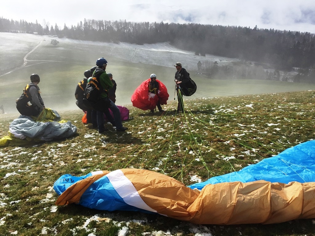 Wir blicken auf einen perfekten Ostergrundkurs zurück. Während im Thal der Nebel liegt scheint bei uns hoch oben am Übungshang die Sonne und die Grundkursteilnehmer erlernen die verschiedenen Starttechniken, die Landeeinteilung und bekommen viel Flug-Know-How vermitttelt. Bereits nach 2 Tagen Übungshang erleben die Schüler zusammen ihren ersten Höhenflug - was für ein Erlebniss :-)